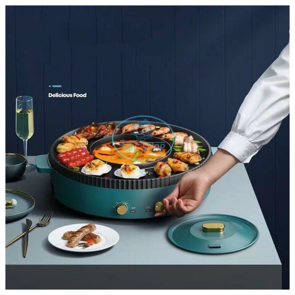 Bếp Lẩu Kiêm Nướng Điện Đa Năng Dễ Sử Dụng, Bếp Lẩu Nướng 2 Trong 1 HONGSHUANGXI Cao Cấp