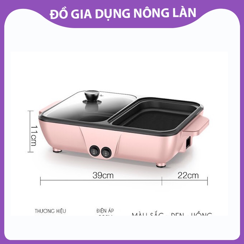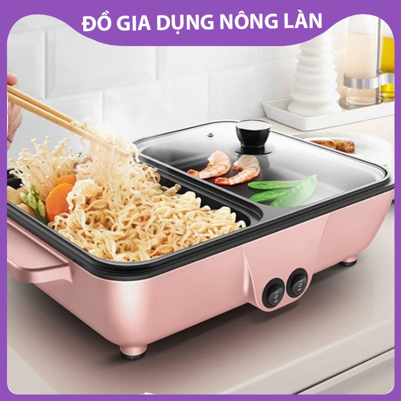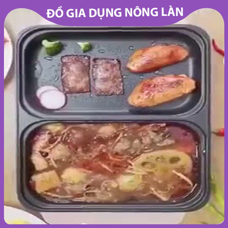 Bếp lẩu nướng 2 in 1 NLSHOP mini đa năng bảo hành 6 tháng chống dính, nồi lẩu nướng 2 ngăn hàn quốc