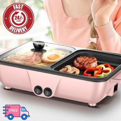 Bếp Lẩu Nướng 2 trong 1 có thiết kế màu hồng, nhỏ gọn, dễ dàng vệ sinh phù hợp với tất cả các không gian ngôi nhà Việt, Bếp Lẩu Nướng đa năng này không sinh ra khói, gọn nhẹ và có thể di chuyển mọi nơi.