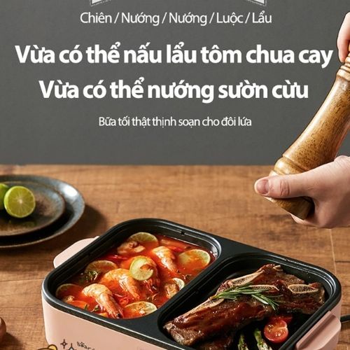 Bếp lẩu nướng 2 in 1, Nồi lẩu nướng điện đa năng 4 người ăn📋 Mô tả sản phẩm: