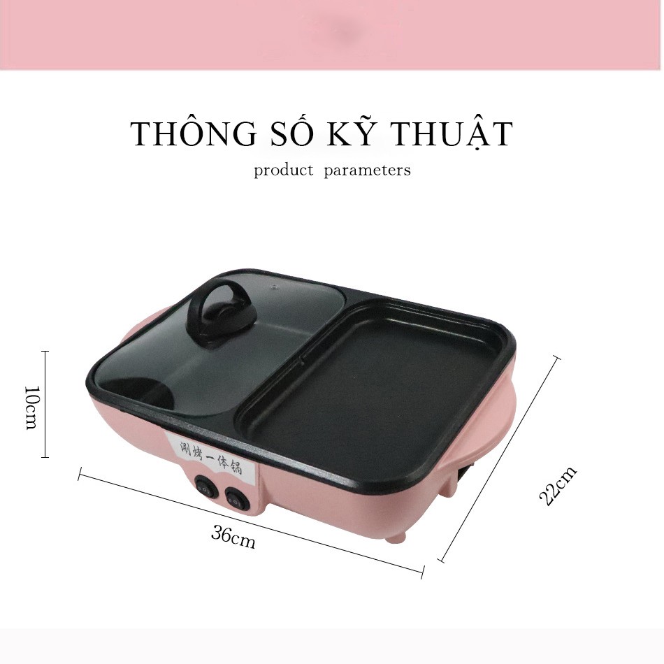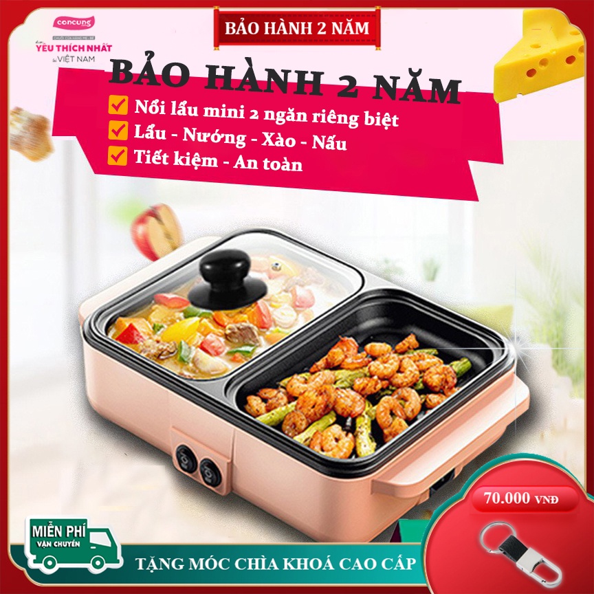 Bếp lẩu nướng 2 in 1, Nồi lẩu mini đa năng 2 ngăn, nồi nướng điện siêu tốc chống dính thế hệ mới tiện dụng