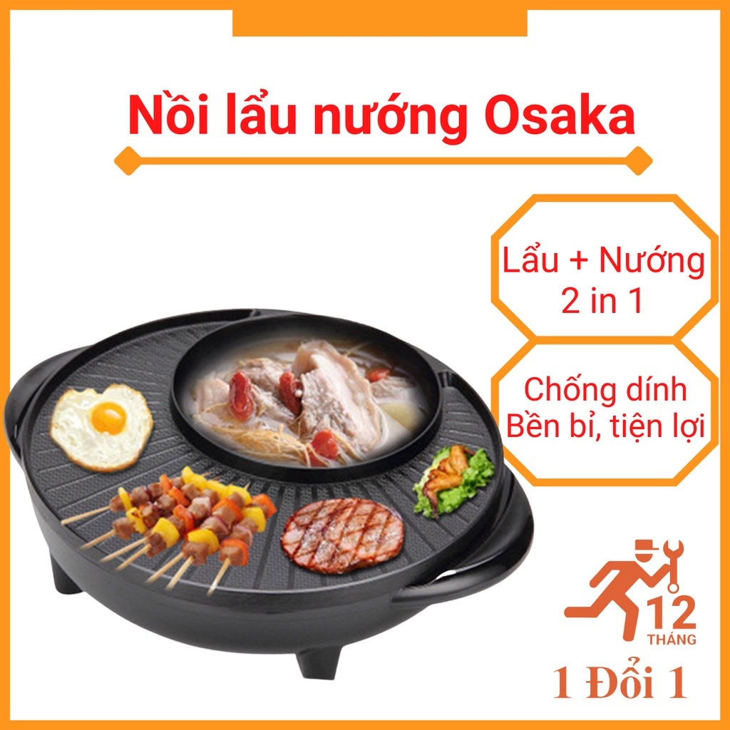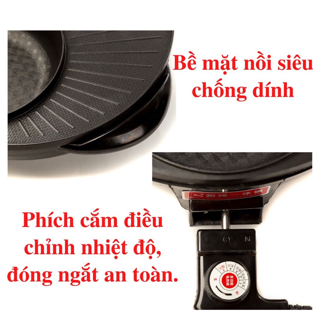 Bếp lẩu nướng, 2 in1 bệ mặt bếp siêu chống dính, dẫn nhiệt tốt độ bền cao, tiết kiệm điện, bảo hàng 12 tháng