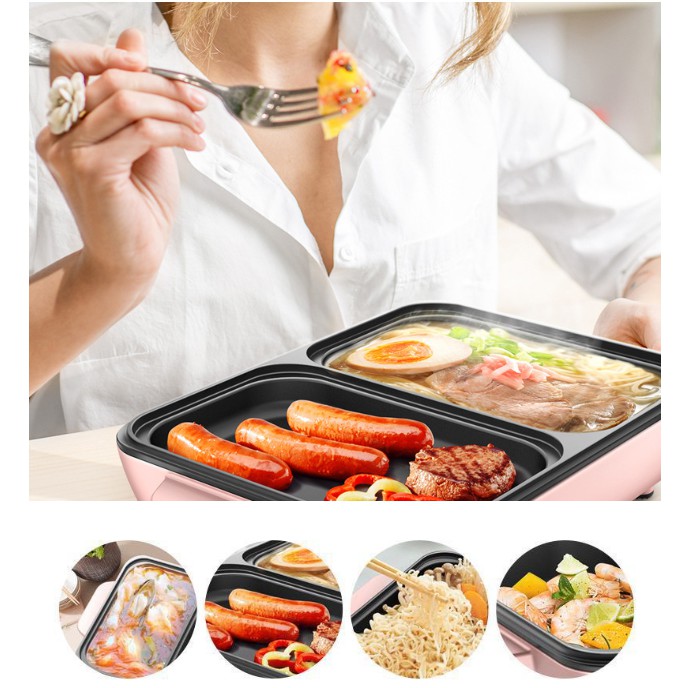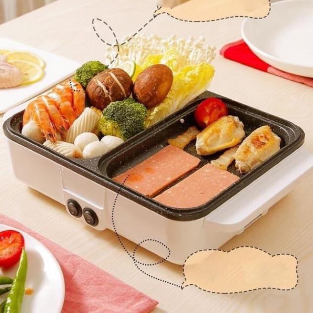 Bếp lẩu nướng 2 ngăn đa năng điều chỉnh nhiệt độ, chống dính cao cấp tiện lợi