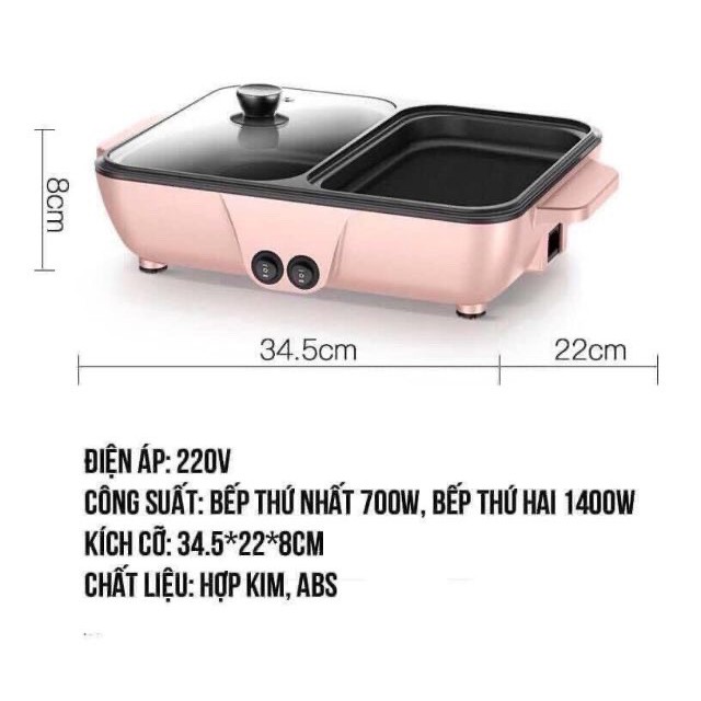 - Chống dính- 2 ngăn Nướng - Lẩu (Bạn có thể chiên, xào, rán, tuỳ ý ạ)