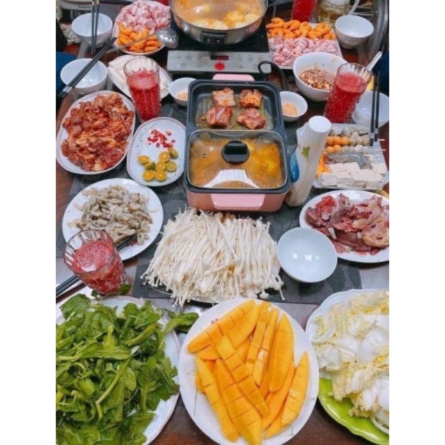 - Đồng thời ăn món lẩu và món nướng chỉ trên một chiếc bếp. Tiết kiệm thời gian, công sức chuẩn bị