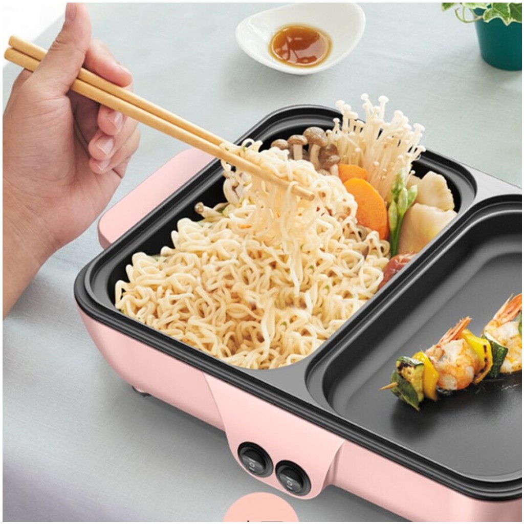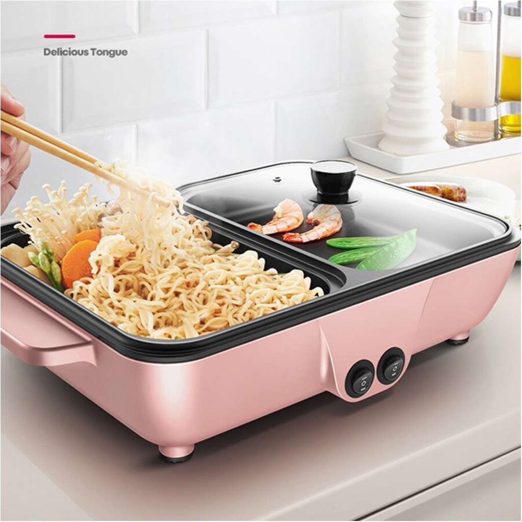 Giới thiệu Bếp Lẩu Nướng 2 Ngăn Đa Năng, Công Suất 1200W Sôi Nhanh, Chất Liệu Gang Cháng Men Chống Dính, Đảm Bảo Vệ Sinh Ăn Uống
