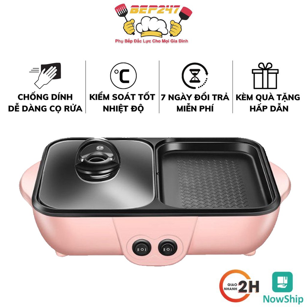 Bếp Lẩu Nướng 2 Ngăn Đa Năng, Công Suất 1200W Sôi Nhanh, Chất Liệu Gang Cháng Men Chống Dính, Đảm Bảo Vệ Sinh Ăn Uống