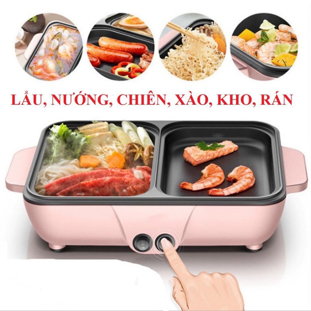 Bếp lẩu nướng 2 ngăn Hàn Quốc, nồi lẩu đa năng thông minh chống dính 2 trong 1