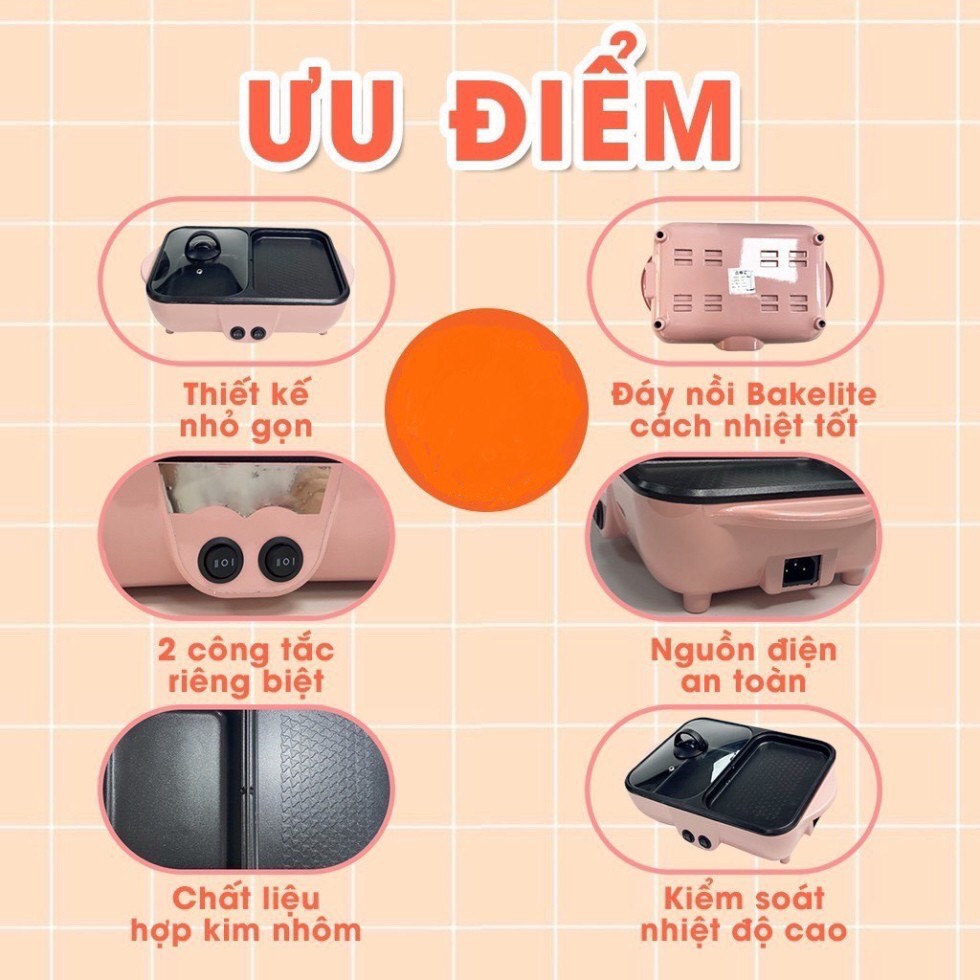 Bếp lẩu nướng 2 ngăn Hàn Quốc, nồi lẩu đa năng thông minh chống dính 2 trong 1Thông Tin Sản Phẩm:
