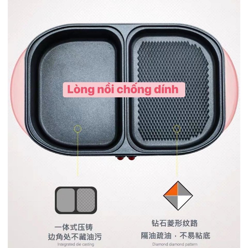Bếp lẩu nướng 2 ngăn Hàn Quốc nồi lẩu 2 in 1 siêu chống dính đa năng chính hãng