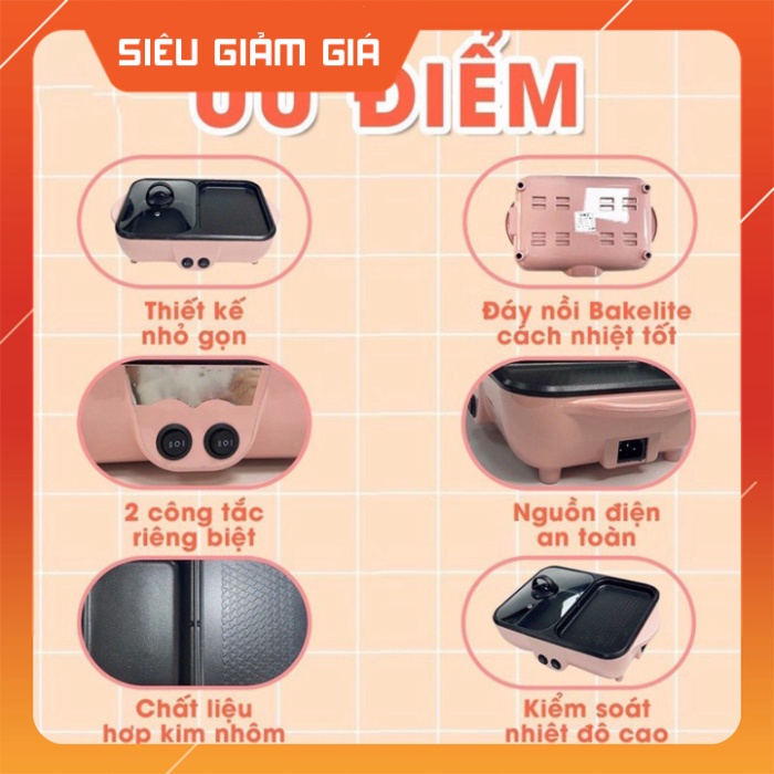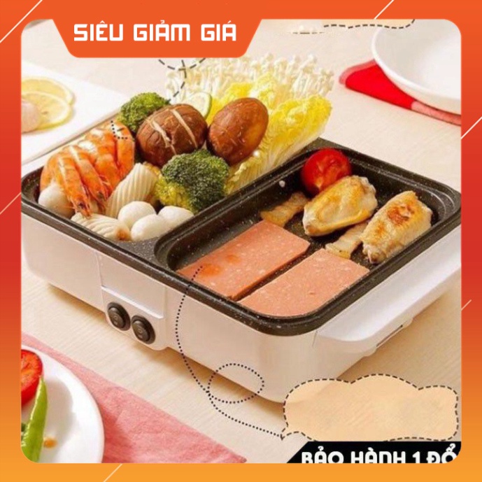 Bếp lẩu nướng 2 ngăn Hàn Quốc, Nồi lẩu nướng 2 in 1 siêu chống dính đa năng bảo hành lỗi 1 đổi 1