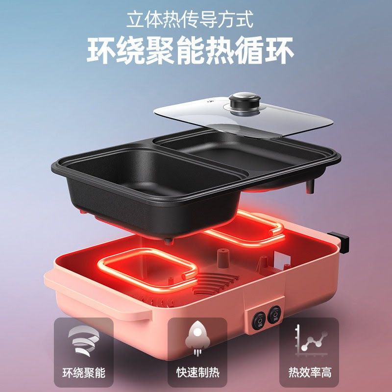 Giới thiệu [Mã ELHADEV giảm 4% đơn 300K] Bếp lẩu nướng 2 ngăn,Nồi lẩu Uyên Ương mini Hàn Quốc
