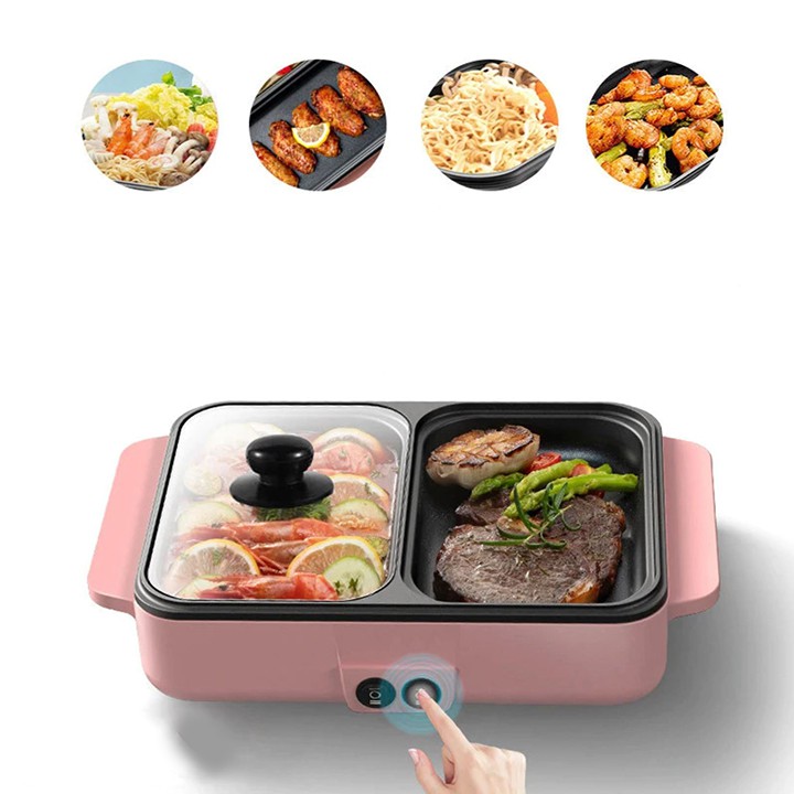 Nồi lẩu nướng điện mini 2 ngăn Chống Dính Đa Chức Năng mẫu mới nhất hiện nay