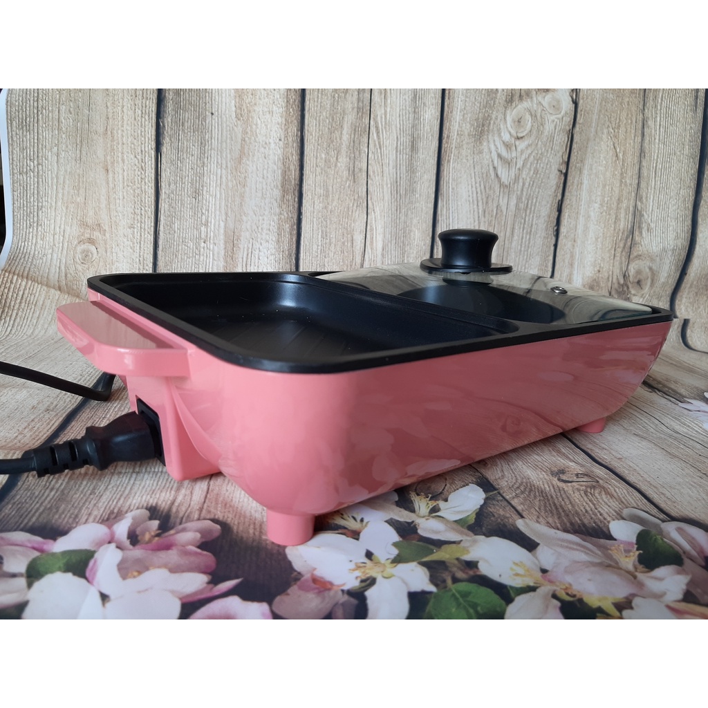 Bếp nướng lẩu 2 in 1 Mini CAO CẤP.+ Thiết kế tiện dụng có thể nhúng lẩu và nướng cùng lúc, ngoài ra còn xào rán làm được tất tần tật các món luôn.
