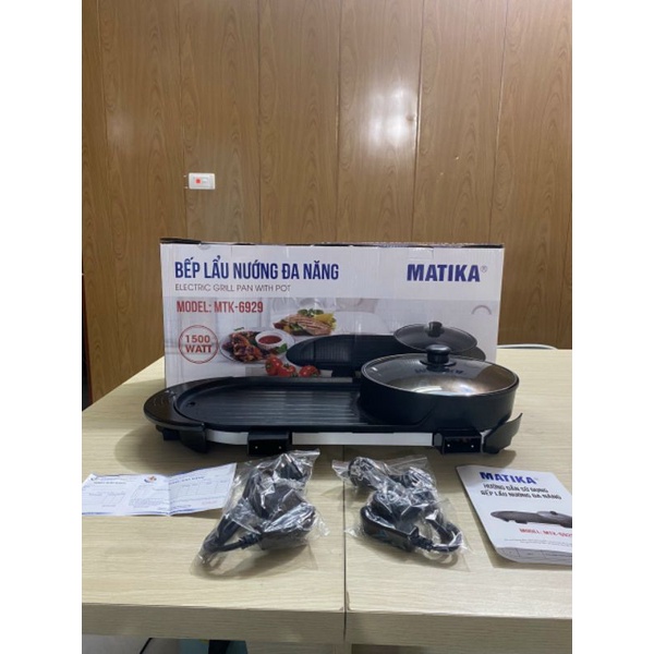 Bếp lẩu nướng đa năng 💖 MATIKA 💖 nồi lẩu nướng 2in1 công suất 1500w MTK-6929Nồi lẩu nướng đa năng chính hãng Matika MTK-6929 thiết kế nhỏ gọn sang trọng, tích hợp 2 chức năng lẩu và nướng vô cúng tiện lợi, công suất khủng 1500W giúp nấu chín thức ăn nhanh chóng là sản phẩm tiện dụng cho bữa ăn sum vầy.