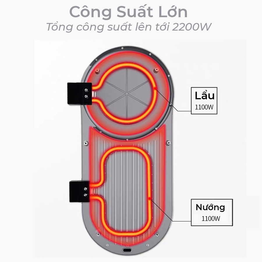 - Công suất: 2200W, lẩu: 1100W, nướng:1100W