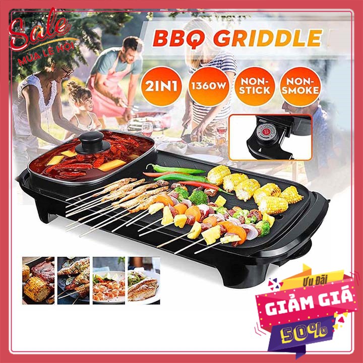 Bếp lẩu nướng BBQ đa năng 2 in 1 gia đình 6 người ăn