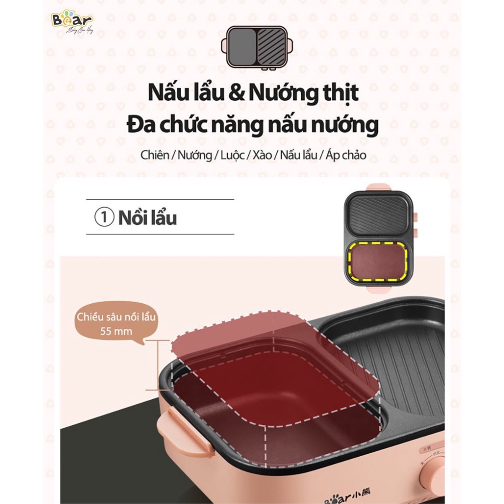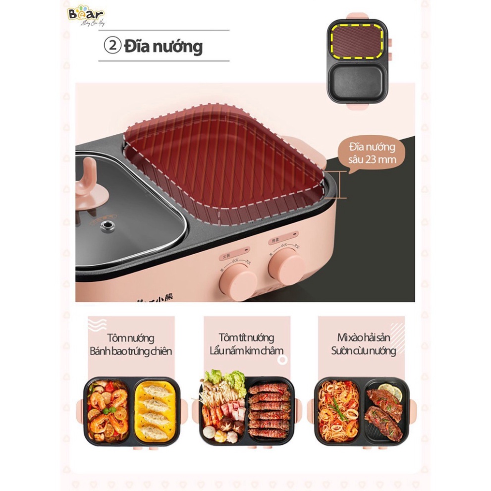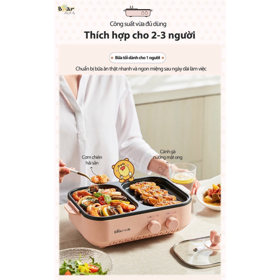 Giới thiệu Bếp lẩu nướng BEAR DKL-C12D1, Bếp điện đa năng 2 ngăn, sử dụng thuận tiện dễ dàng -Bản quốc tế, Bảo hành 12 tháng