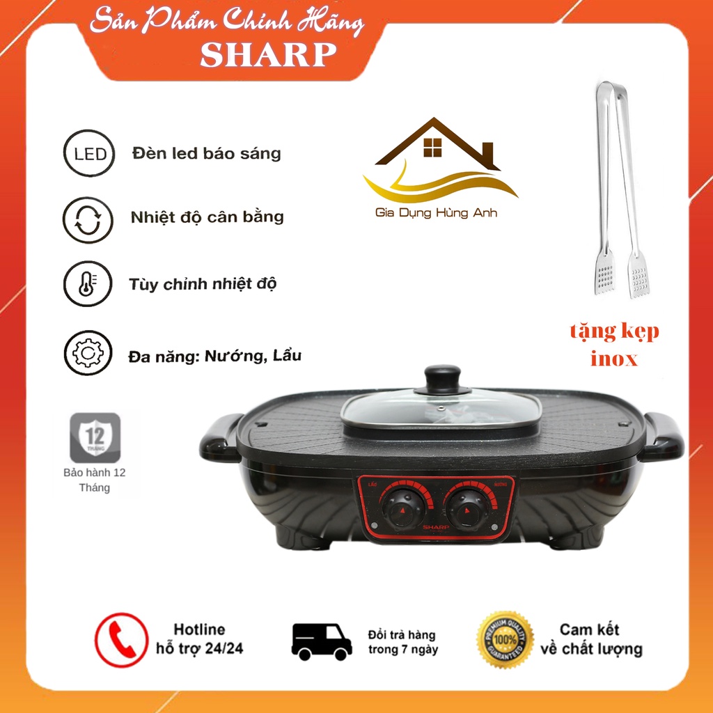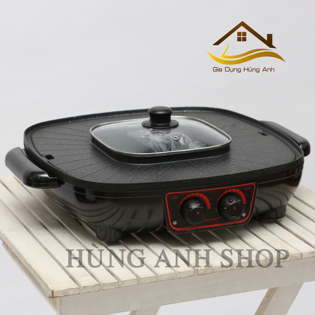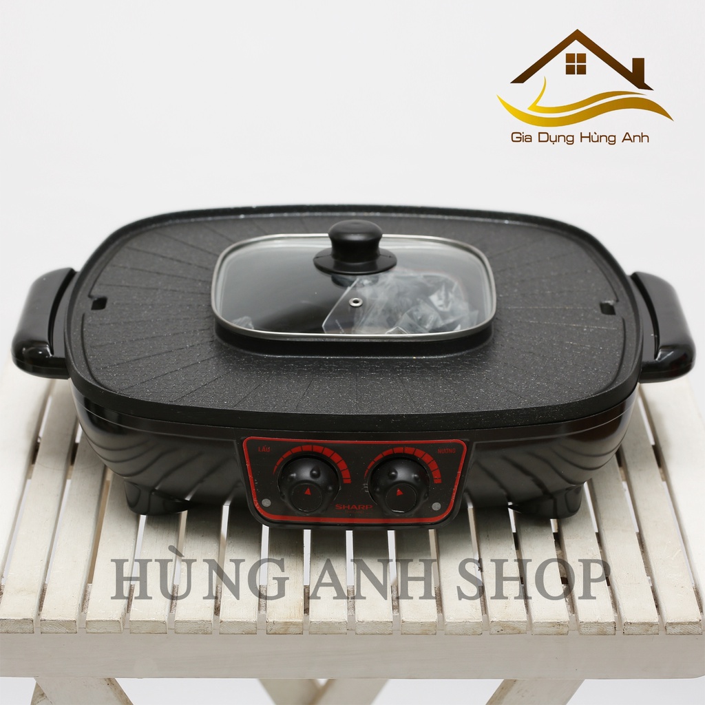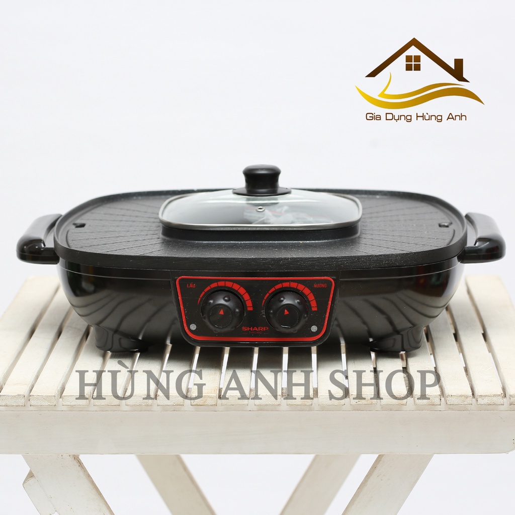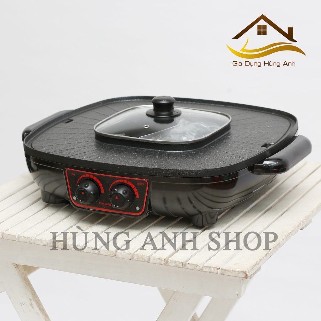 Bếp Lẩu Nướng Cao Cấp Đa Năng SHARP, Thiết kế 2 trong 1 tiện dụng, Bề mặt chống dính cao cấp, Bảo hành 12 Tháng