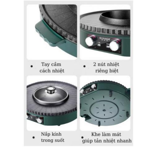 Bếp lẩu nướng đa năng 2 in 1 có 2 mâm nhiệt - Nồi lẩu điện đa năng - BH 12 tháng - Hàng đẹp