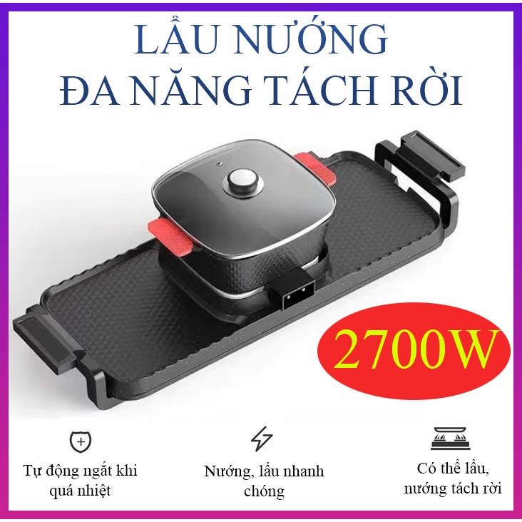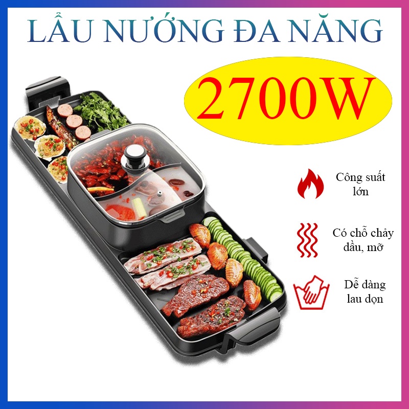 Bếp lẩu nướng đa năng 2 in1 , bếp lẩu nướng cao cấp 2700w, có thể dùng cho bữa tiêc 8 - 10 người - K1304