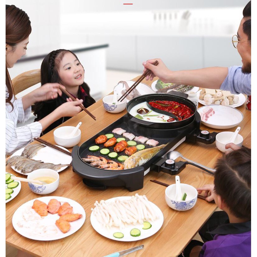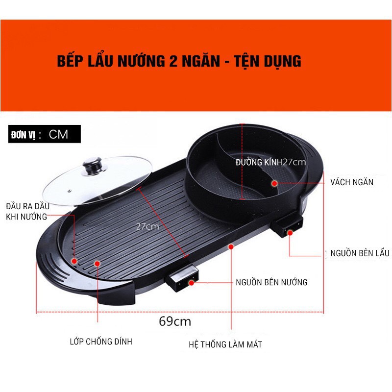 Bếp lẩu nướng Đa năng 2 trong 1, Công suất 2150W bề mặt chống dính truyền nhiệt nhanh, tiện lợi cho mọi gia đình