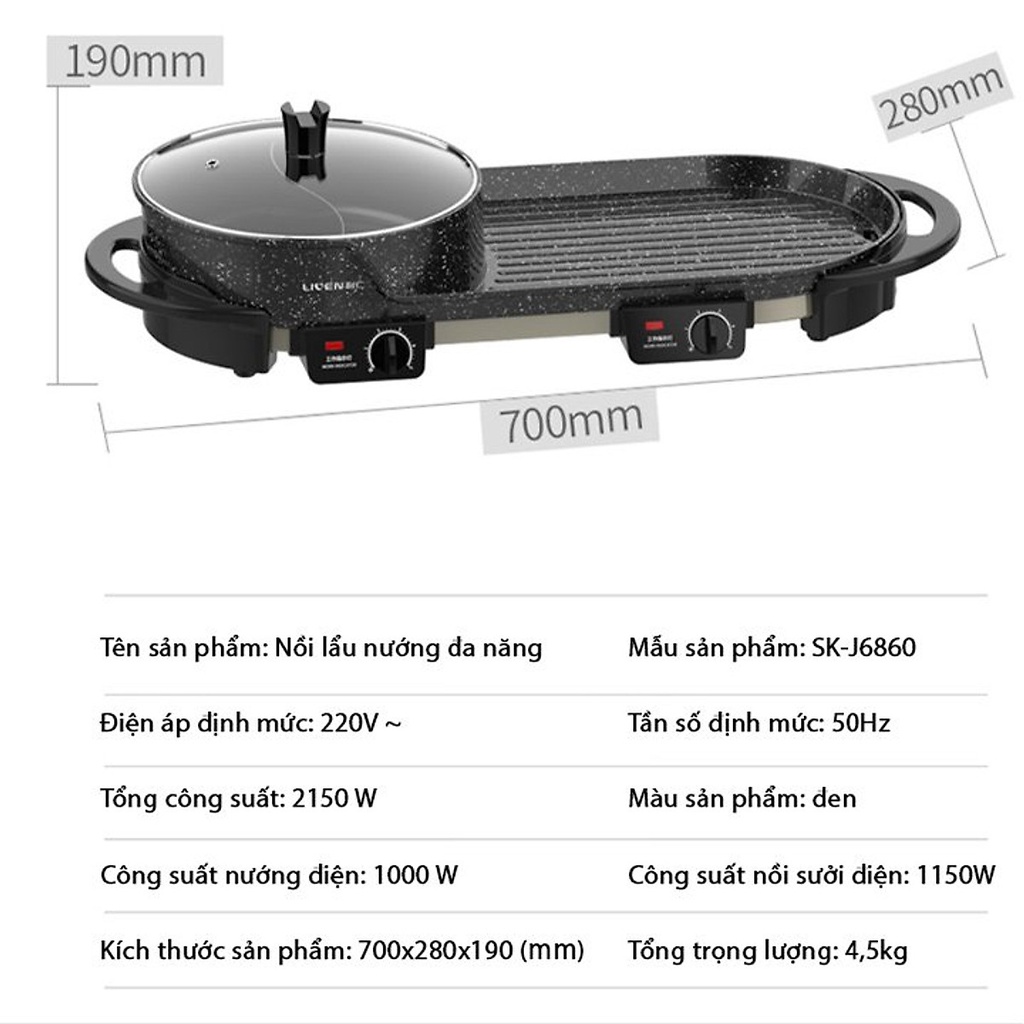Giới thiệu [Mã ELHADEV giảm 4% đơn 300K] Bếp lẩu nướng đa năng 2 trong 1 Liven SK-J6860 tiện lợi cao cấp - Minh Tín Shop