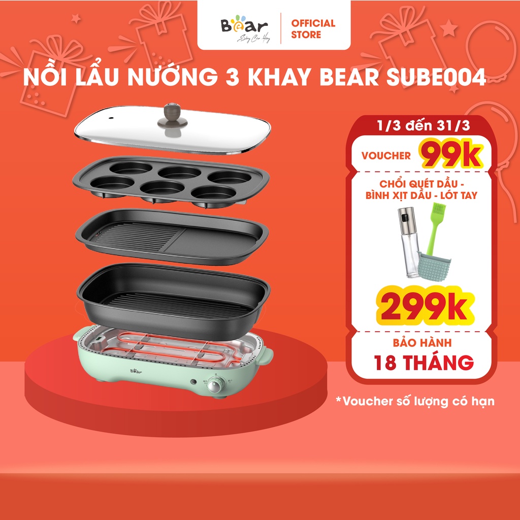 Bếp Lẩu Nướng Đa Năng Bear 3 Khay Cơ Chế Tự Ngắt Điện An Toàn Tuyệt Đối - SUBE004