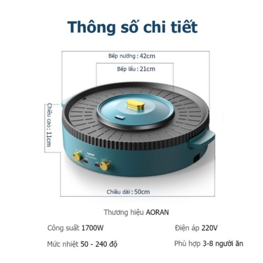 - Điều chỉnh nhiệt độ lẩu và nướng khác nhau 1 cách dễ dàng
