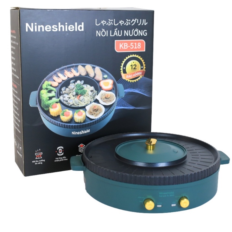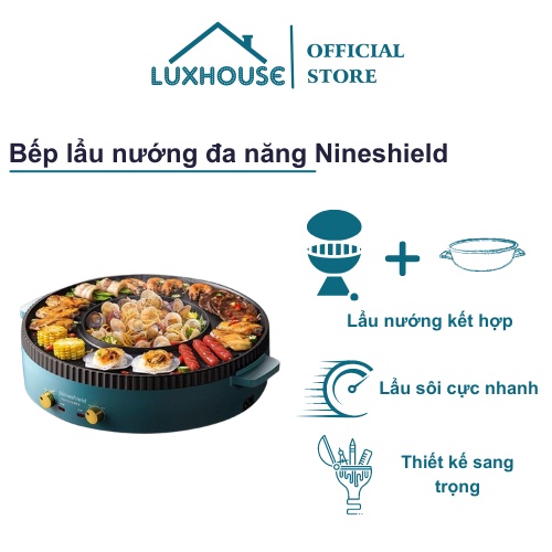 Bếp lẩu nướng đa năng - Bếp lẩu nướng không khói 2 trong 1 NINESHIELD - Thích hợp 5 đến 8 người, 2 mâm nhiệt độc lập---------------------------------------