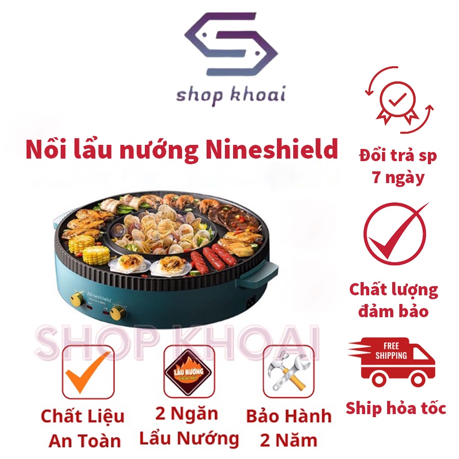 Bếp lẩu nướng đa năng - Bếp lẩu nướng không khói 2 trong 1 NINESHIELD - Thích hợp 3 đến 5 người, 2 mâm nhiệt độc lập🔰 Shop Khoai D&S Kính Chào Qúy Khách 💗