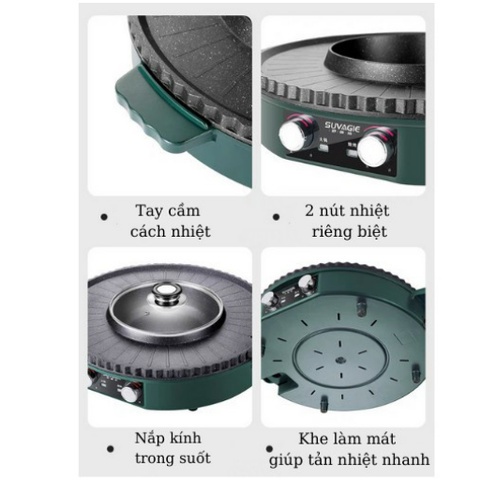 🍀 Với Bếp lẩu nướng đa năng, người sử dụng có thể vừa nướng nhiều loại thức ăn và đồng thời nấu lẩu cùng một lúc.
