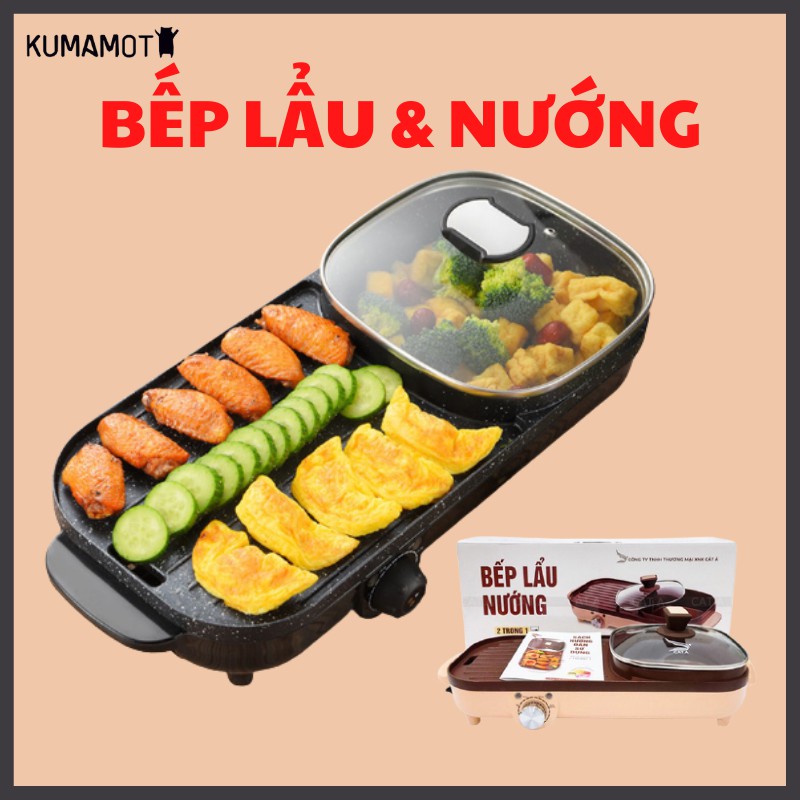 Bếp lẩu nướng đa năng cao cấp 2 in 1 cao cấp - vừa lẩu vừa nướng siêu tiện lợi - Công suất 1500W
