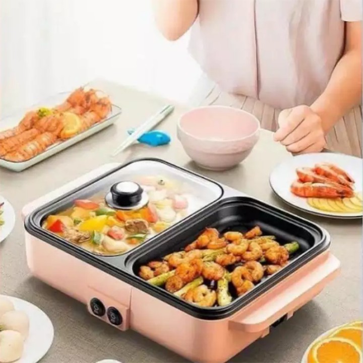 Nồi lẩu nướng điện mini 2 ngăn Chống Dính Đa Chức Năng mẫu mới nhất hiện nay