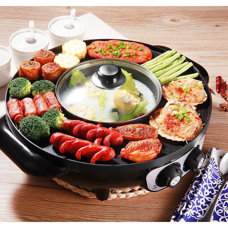 dặc biệt bếp nướng điện được tích hợp phần lẩu nướng, nồi lẩu nướng được đặt ở giữa giúp bạn có thể vừa nấu lẩu vừa có thể làm nhiều loại lẩu khác nhau trên cùng một sản phẩm