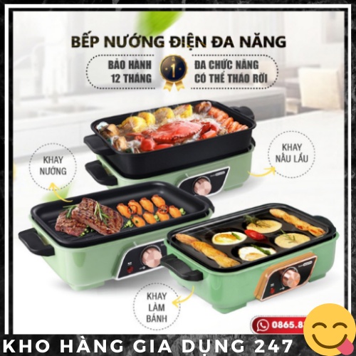 Kho hàng gia dụng 247 xin kính chào quý kháchshop xin giới thiệu quý khách một sản phẩm cực kỳ tiện lợi: Bếp lẩu nướng đa năng kết hợp 3 trong 1 khay rời, nướng, lẩu, làm bánh, có sẵn khay, an toàn tiện lợi