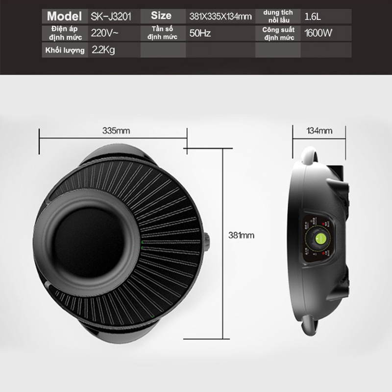 Nhà cửa & Đời sống > Dụng cụ nhà bếp > Chảo || [Mã 273ELHA100K0 hoàn 7% đơn 500K] Bếp lẩu nướng đa năng LIVEN SK-J3201/Công suất 1600WCòn hàng