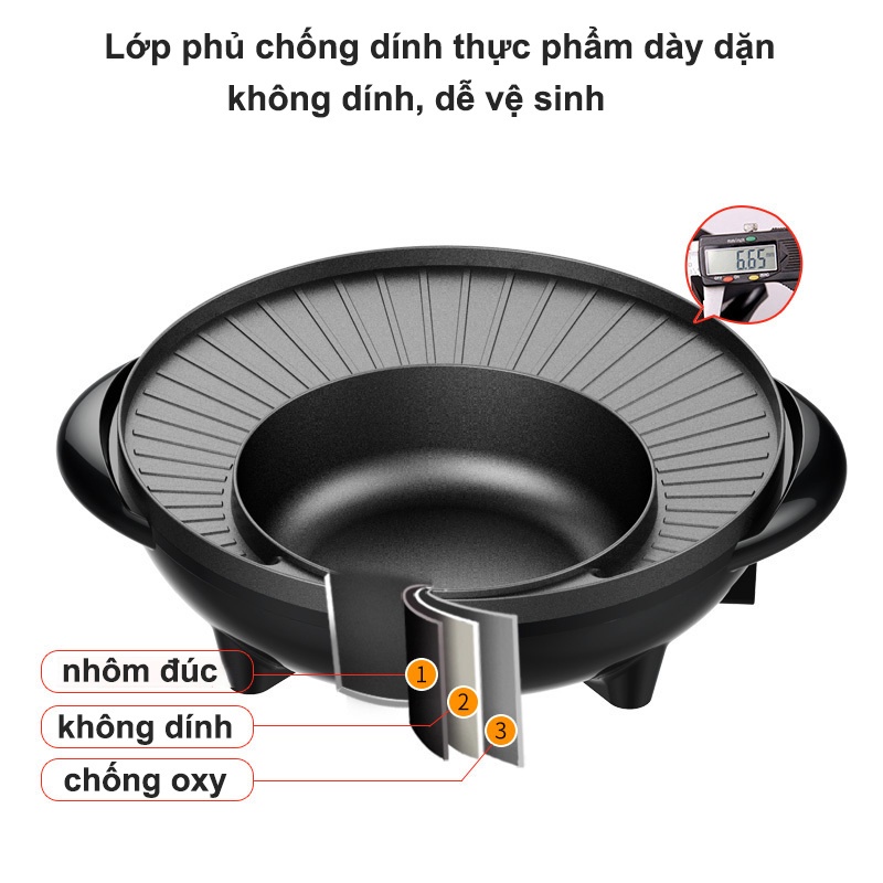 Kết cấu nồi lẩu, vỉ nướng đa năng