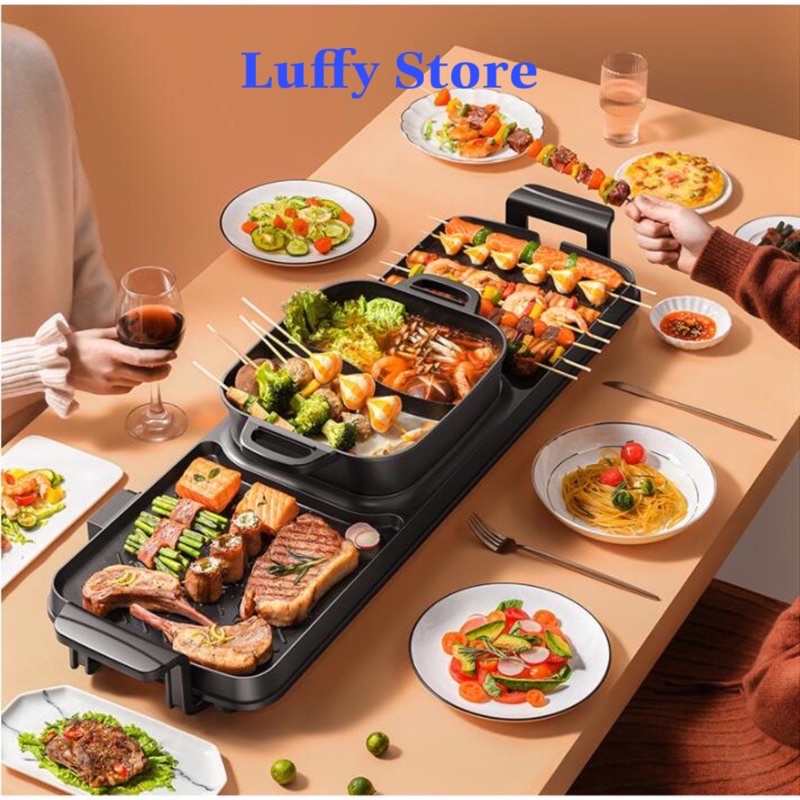 Bếp Lẩu nướng To 2 phích cắm kiểm soát nhiệt độ riêng biệt