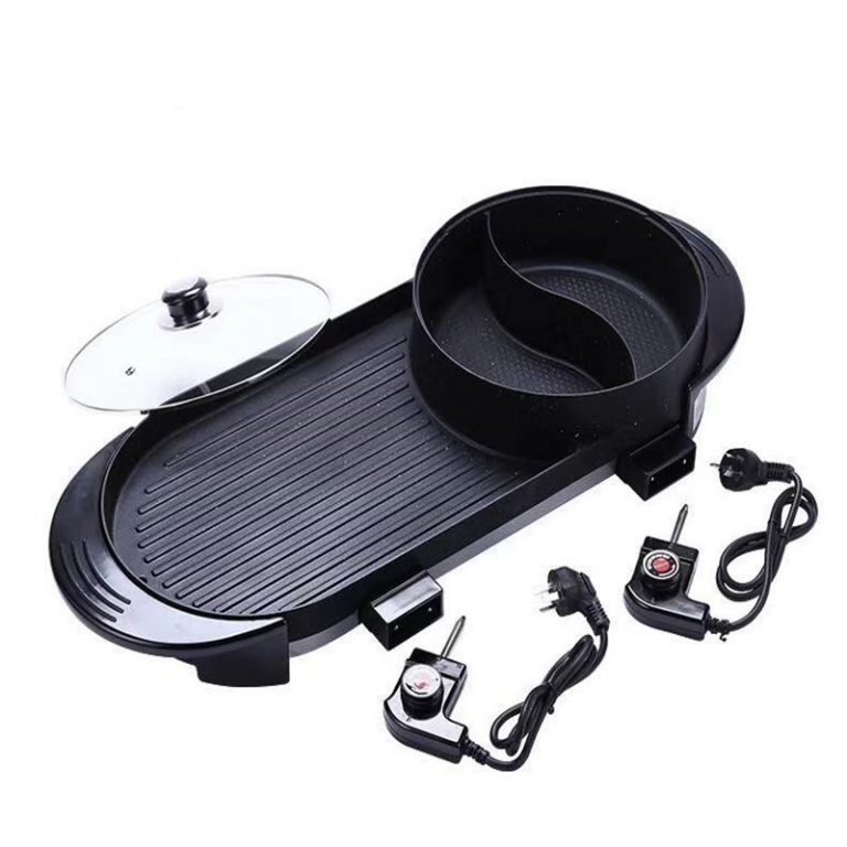 - Tiết kiệm điện với 2 núm điều chỉnh nhiệt độ cho nồi lẩu và bếp nướng