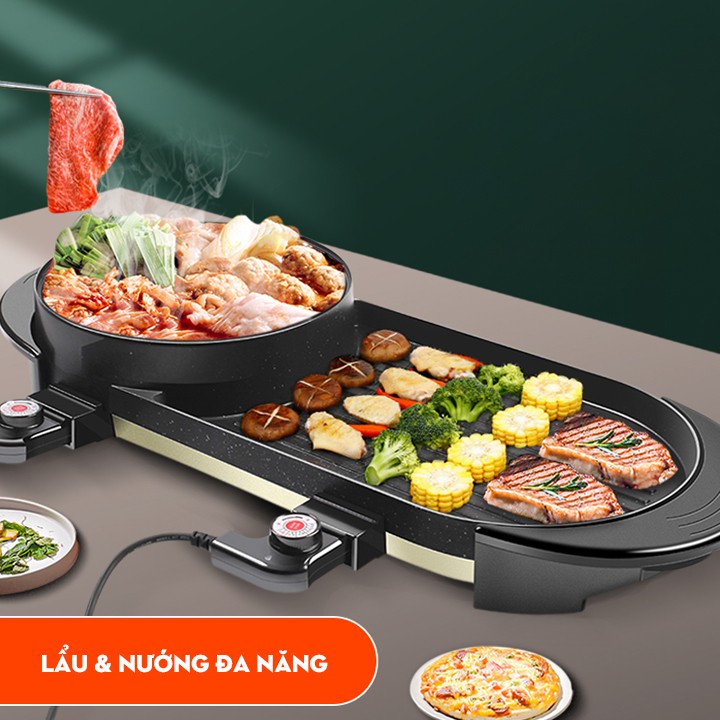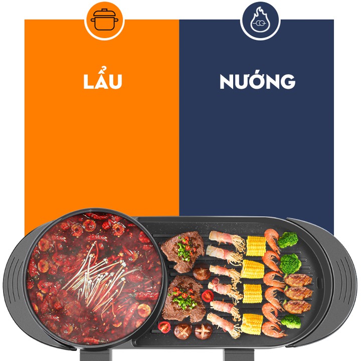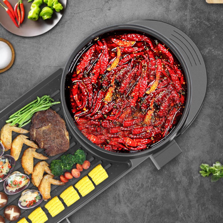 + Bếp nướng điện được tích hợp phần nồi lẩu ở giữa nên có thể làm nhiều loại lẩu khác nhau trên cùng một sản phẩm như: nướng, lẩu, nấu cháo, luộc, chiên, xào,…