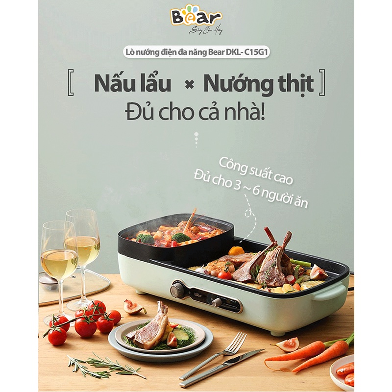 Bếp Lẩu Nướng Điện 2 Ngăn Đa Năng 2 trong 1 Bear 3L DKL-C15G1 - Phiên Bản Quốc Tế - Bảo hành 18 tháng