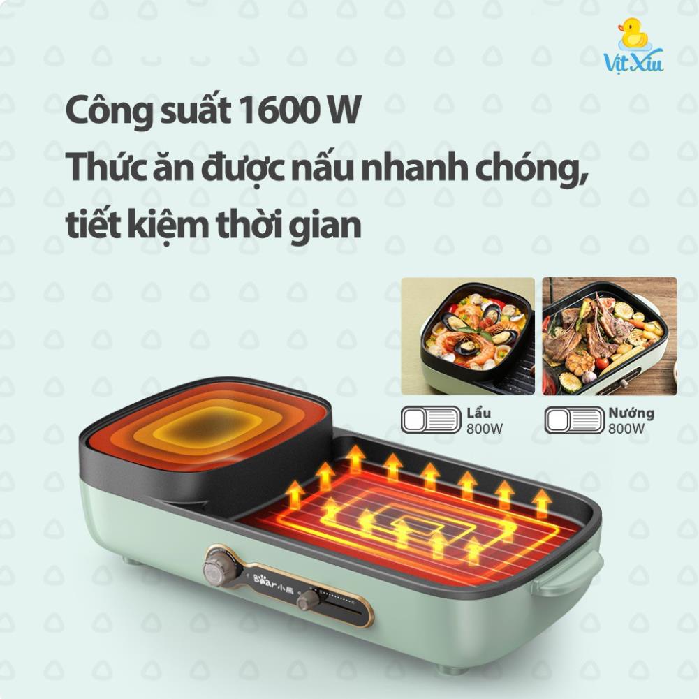 - Công suất: 1600W (800W cho nồi lẩu + 800W cho bàn nướng)