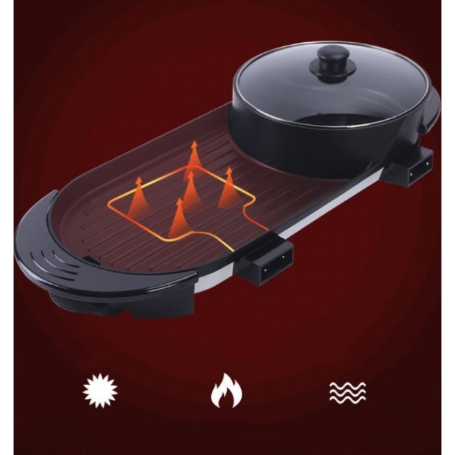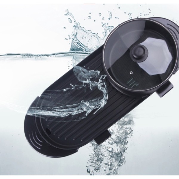 - Bếp nướng kiêm nồi lẩu song song có thiết kế nhỏ gọn,nắp kính cường lực trong suốt giữ nhiệt, chống bắn bẩn, dễ dàng quan sát quá trình chế biến.