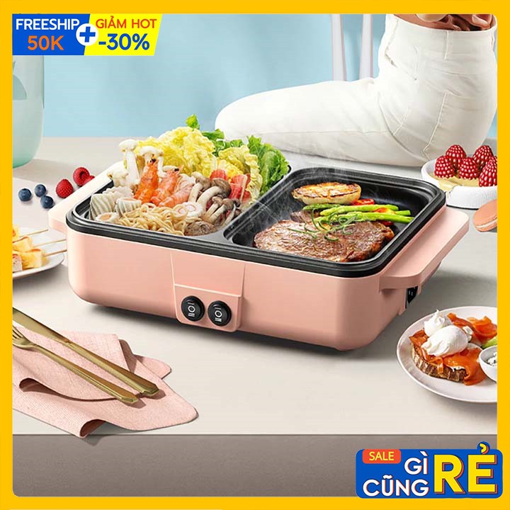 Nồi lẩu nướng điện mini 2 ngăn Chống Dính Đa Chức Năng mẫu mới nhất hiện nay