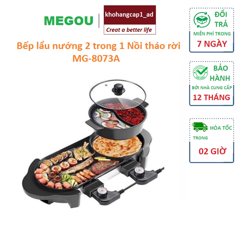 Bếp lẩu nướng điện đa năng 2 trong 1 nồi lẩu tháo rời Megou MG-8073A - BH 12 tháng - khohangcap1_ad