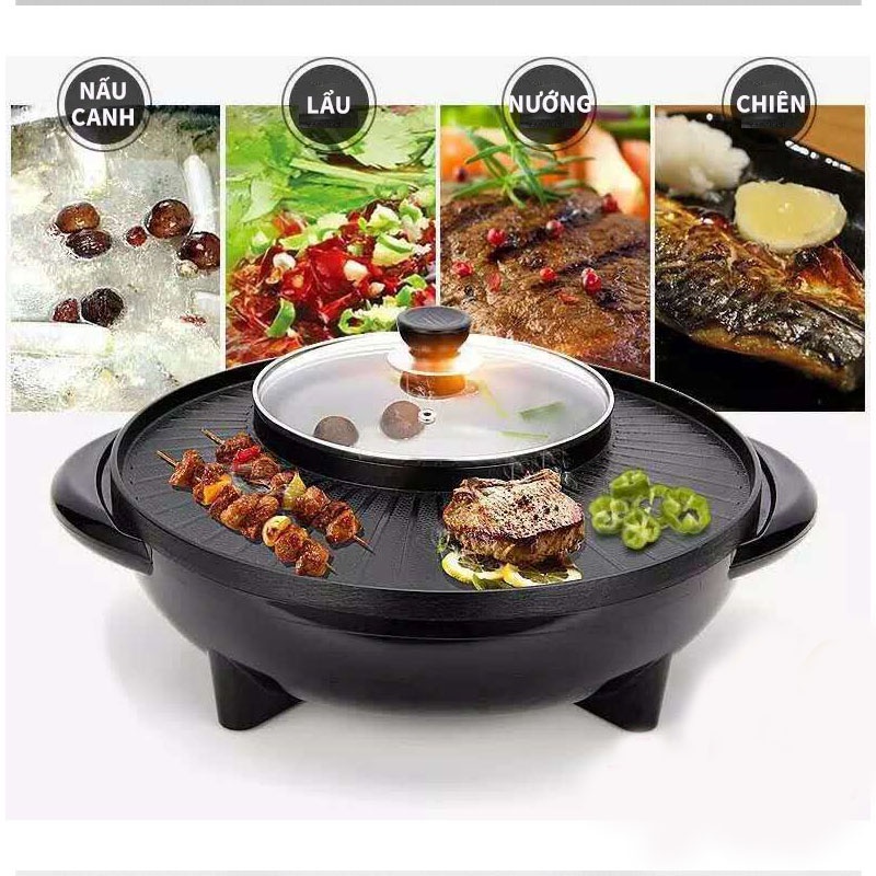 - Bếp Lẩu Nướng Đa Năng này có nhiều chức năng như: nướng, xào, lẩu, rán mặt bếp được phủ chống dính đá hoa cương truyền nhiệt nhanh, giữ nhiệt tốt, công suất 1.600W thức ăn chín nhanh hơn, ngon hơn và không mất chất dinh dưỡng từ thực phẩm, sức khỏe tốt hơn.