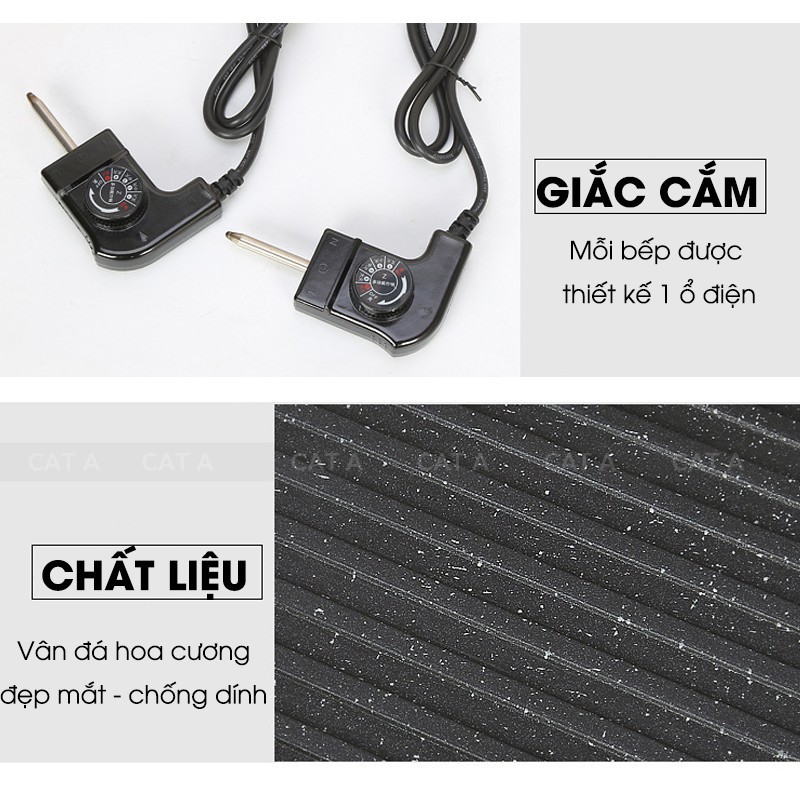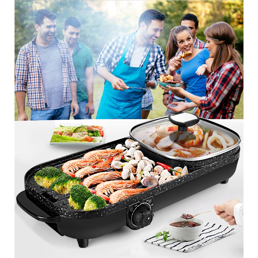 Bếp Lẩu Nướng Điện Đa Năng 2 Trong 1 - 2 Chế Độ Cùng Lúc Lẩu Nướng Kép Hình Chữ Nhật Không Khói