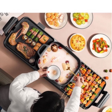 Bếp với 2 nguồn điện riêng biệt có thể sử dụng nướng, chiên , nấu ,.. một cách tiện dụng và nhanh chóng, bếp với diện tích nướng lớn một lúc bạn có thể nướng nhiều món ăn cùng một lúc.