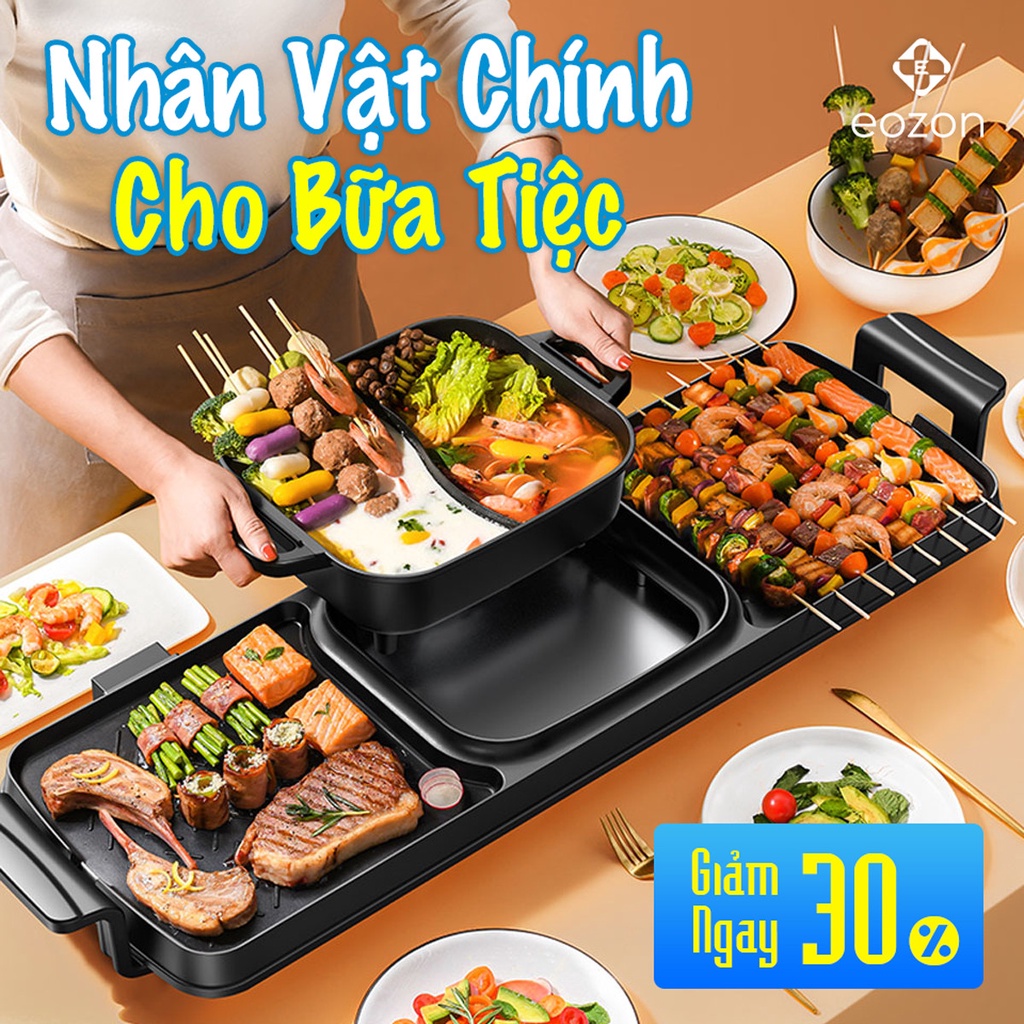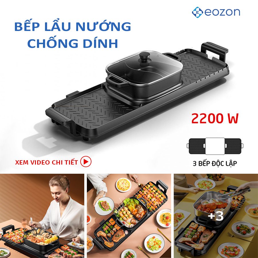 Bếp Lẫu Nướng Điện Đa năng 3 trong 1 Cao cấp EOZON Với Bề Mặt Tráng Men chống dính phong cách hàn quốc ( Chính Hãng)
